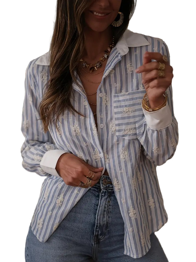 Chemise Rayée Pour Femme Avec Broderie Florale