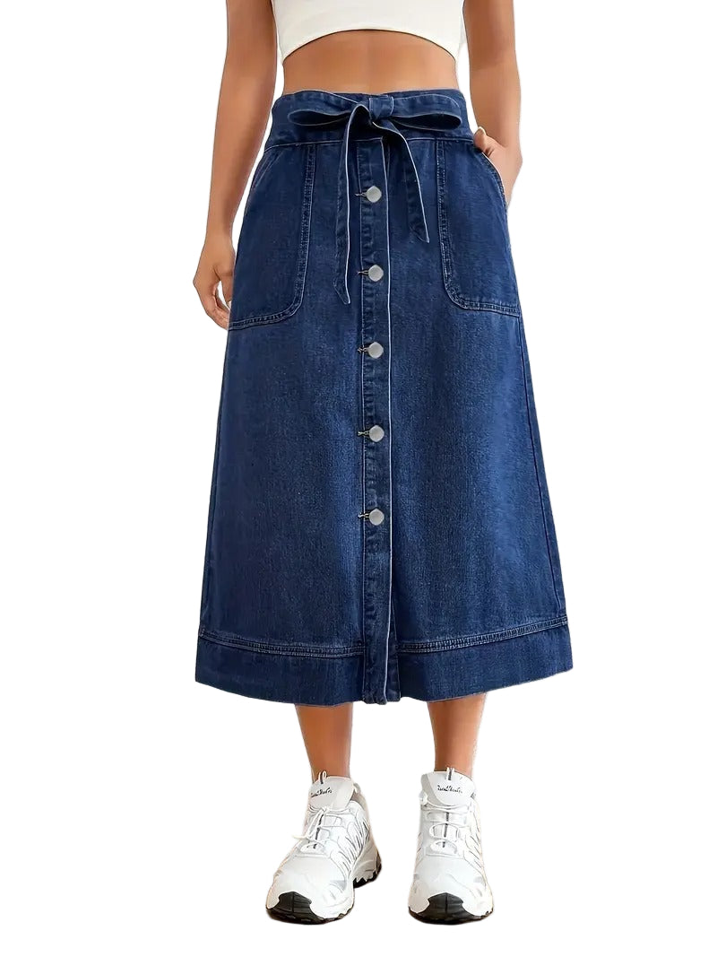 Jupe Midi Taille Haute Pour Femme Avec Ceinture