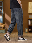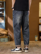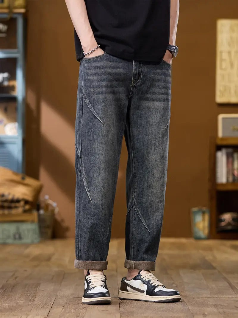 • Finition : Denim délavé avec un effet usé sur le devant des cuisses et des genoux.